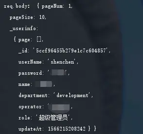 });打印一下req.body,可以看到前端发过来的请求数据: