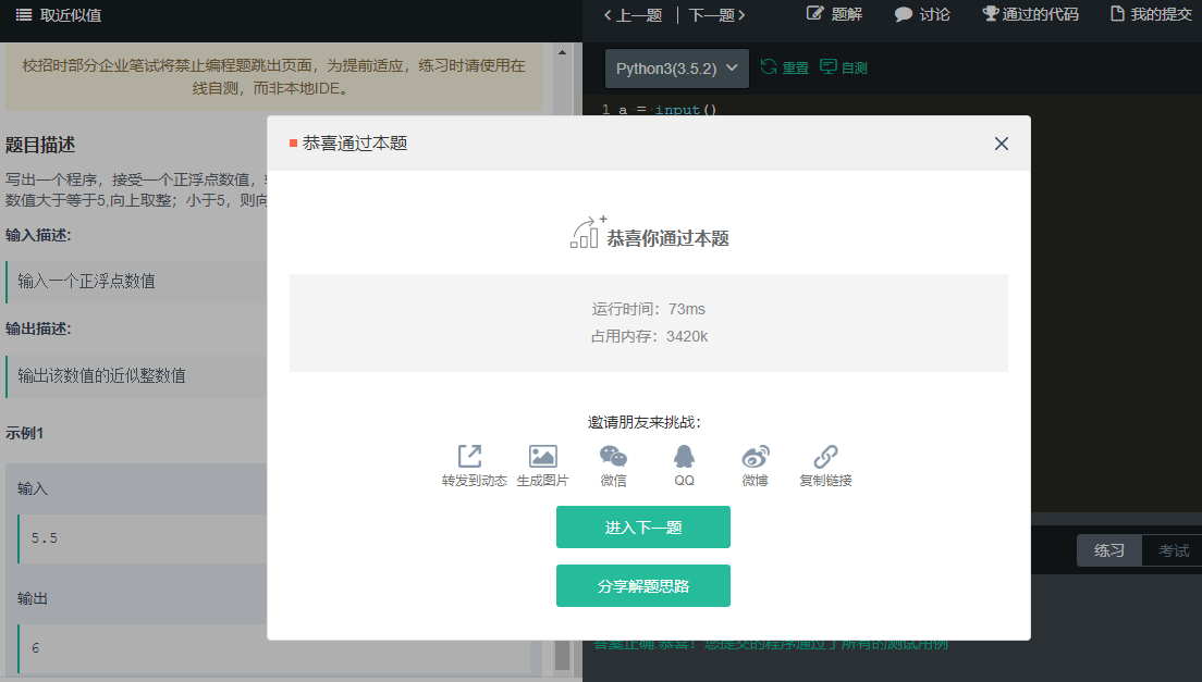 写出一个程序,接受一个正浮点数值,输出该数值的近似整数值。如果小数点后数值大于等于5,向上取整;小于5,则向下取整。