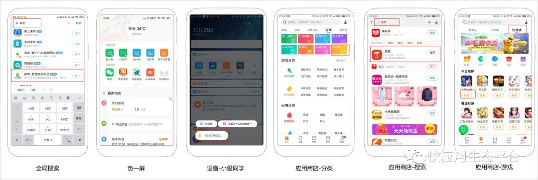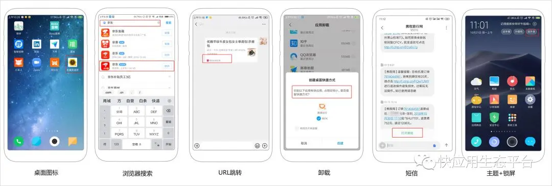 7、桌面图标、二维码扫码跳转、快应用之间的跳转、卸载应用、我的小米、短信、主题+锁屏、推送等