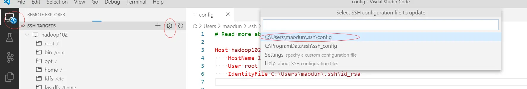 - 远程编辑文件 File/Open File 或者 File/Open Floder