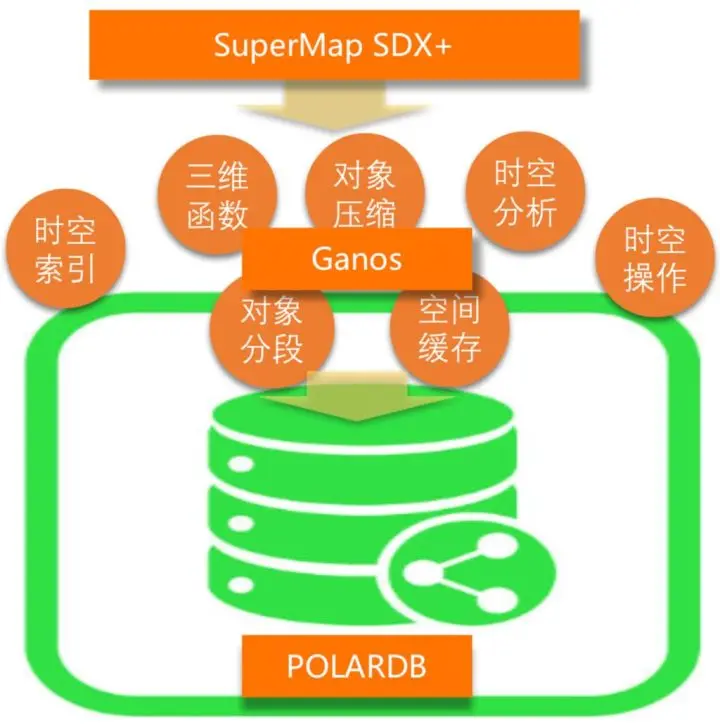 SuperMap GIS平台的空间数据引擎SDX+将空间查询和分析计算直接下推到POLARDB, POLARDB利用空间并行查询优化以及云原生时空引擎Ganos的调度,实现模型的高效映射、空间索引快速过滤以及近百个查询分析的计算下推。