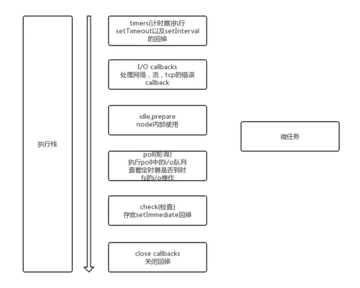 宏任务:script ,ajax , 事件,requestFrameAnimation, setTimeout ,setInterval ,setImmediate (ie下),MessageChannel ,UI rendering