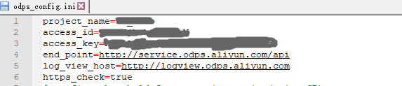 编辑conf文件夹中的odps_config.ini文件,对客户端进行配置,如下所示: