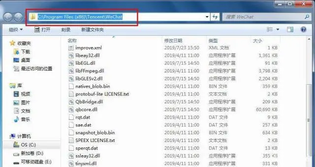 查看一下微信的安装目录,默认安装在 C:\Program Files (x86)\Tencent\WeChat 文件夹内,确认一下自己的目录是不是在这里,复制一下安装路径。