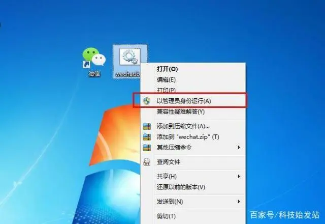 退出正在运行的微信PC版,然后在生成的脚本文件上点击鼠标右键,在弹出菜单中选择以管理员身份运行。