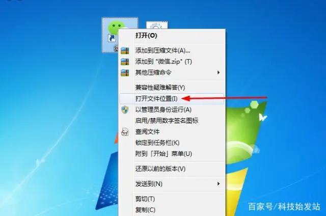 首先在电脑上安装微信PC版,已经安装的可以直接到桌面上寻找微信PC版的图标,点击鼠标右键,在菜单中点击“打开文件位置”。