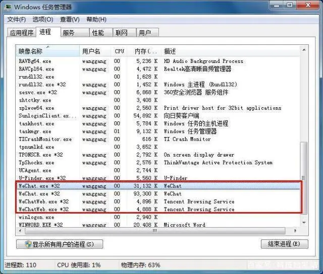 看看进程管理器中,有两套微信进程,说明已经正常运行了。你学会了吗?