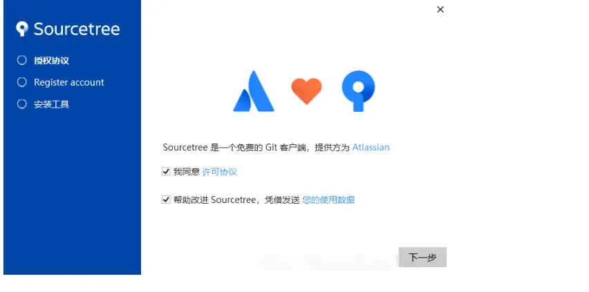然后重新打开桌面的Sourcetree软件,这样直接跳过注册了。