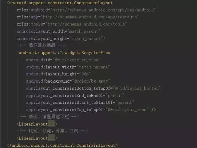 布局文件也很简单,就是顶部一坨菜单,底部一坨操作,中间就是RecyclerView