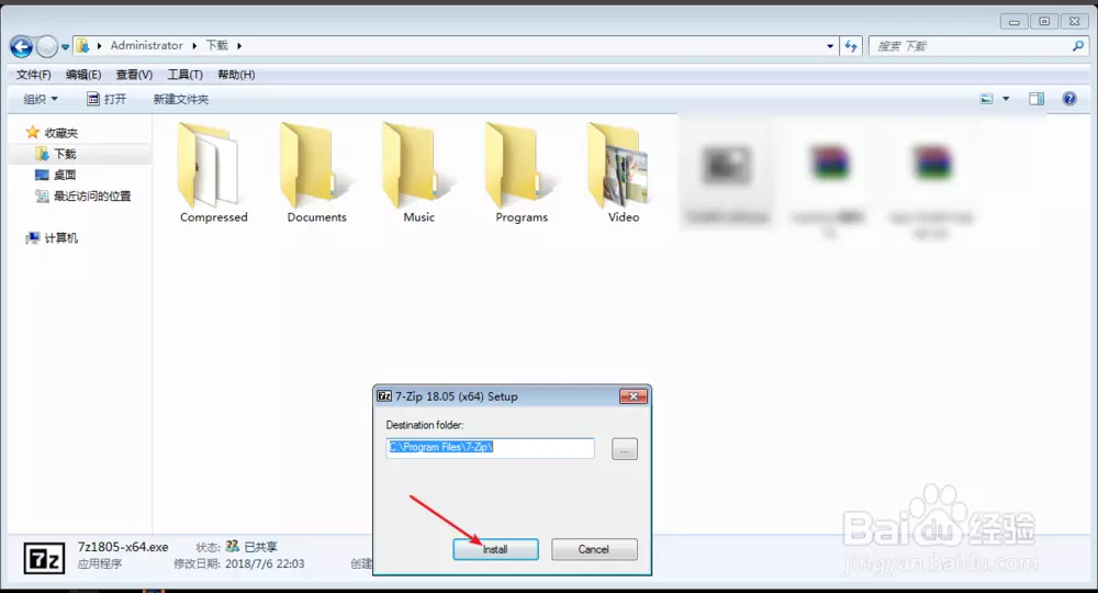 1、你要到网上下载这个压缩的程序,点击它,点击【install】。