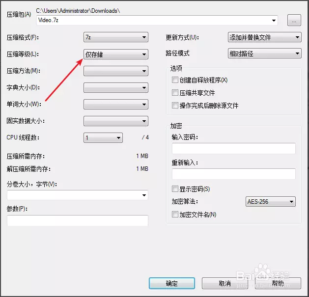 3、右键文件或者文件夹选择这个7z,选择压缩包,点击这个压缩等级这里。