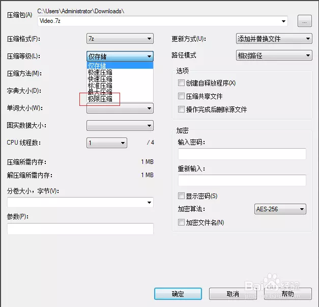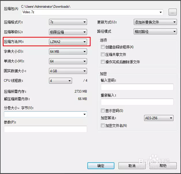 4、选择这个极限压缩,然后压缩算法选择【LZMA2】。