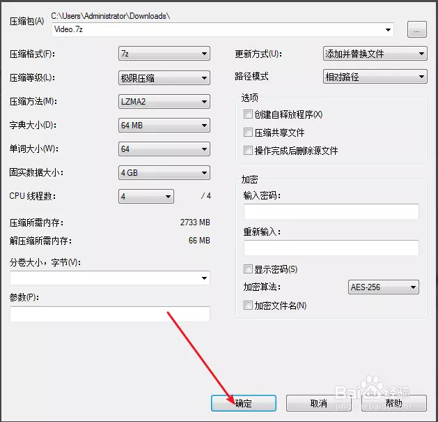 5、然后点击这个确定,软件将会以极限压缩的方式进行压缩的。压缩后的文件明显变小了的。