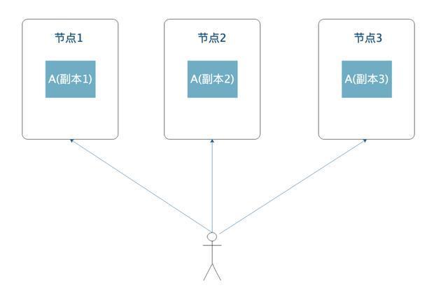 在分布式存储系统中,为了保持系统的高可用,同时增加读操作的并发性,同一份数据会有多份副本,不同的副本存储于不同的节点上,如下图所示