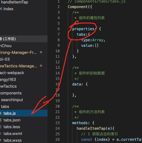 1,在子组件的自定义标签中通过tabs=“{{tabs}}” {{tabs}}是指父组件的data中的键值