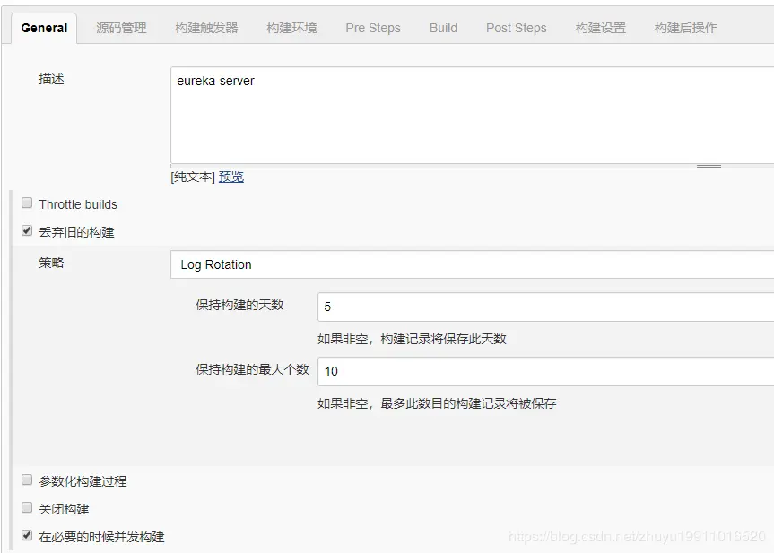 Post Steps 构建完成后添加执行 shell 脚本,脚本的意思是查找eureka-server的进程,并杀死,然后启动 eureka-server包