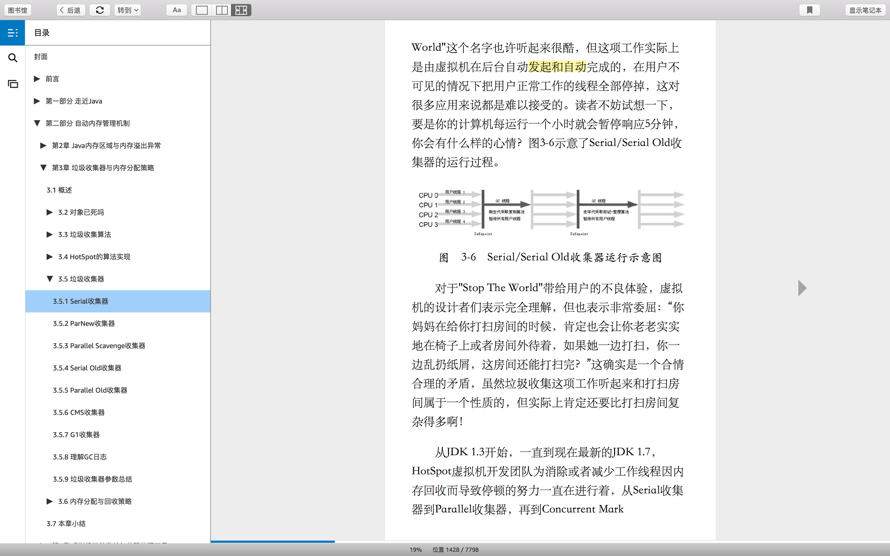 第一,多线程。第二,且工作线程不会停止。也就是说,不同的cpu,有的cpu执行回收线程,有的执行工作线程。