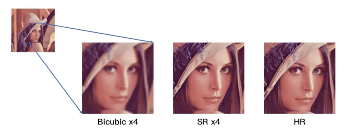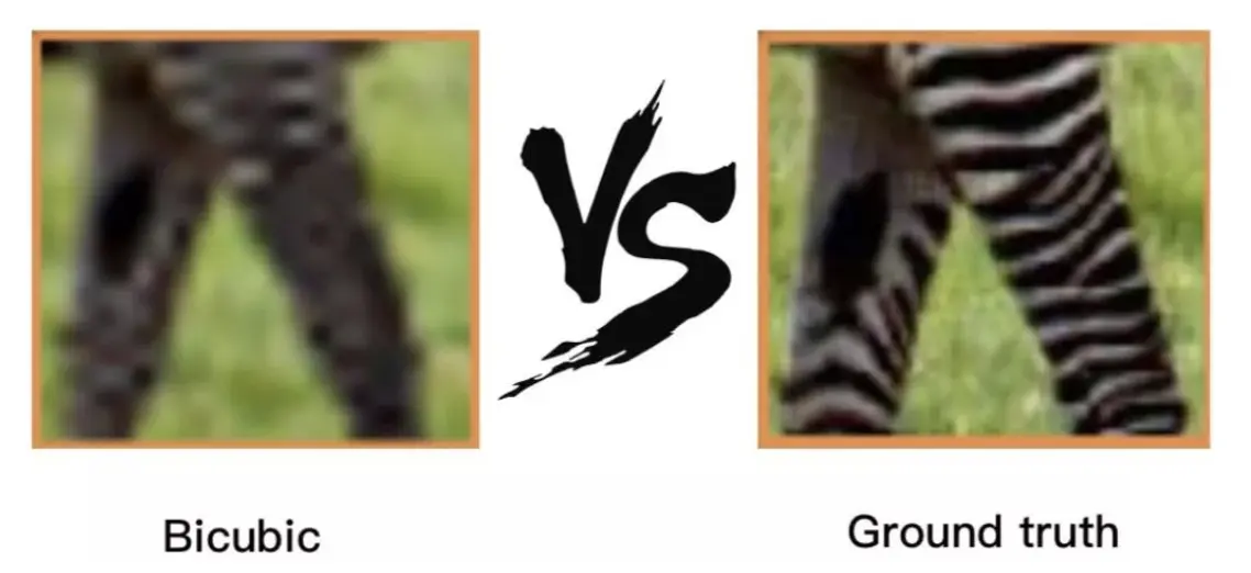 传统最常用的放大方法是插值法,如bicubic、nearest、bilinear等,优点是速度快,但缺点也很明显,即图像放大后,图像存在模糊、细节丢失的现象。