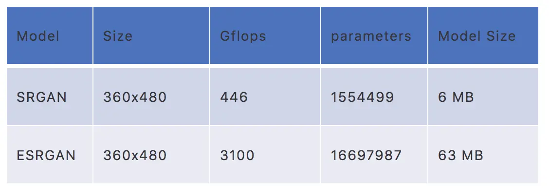 再看运算复杂度方面。以360x480大小的图像作为输入,进行4倍的放大,SRGAN和ESRGAN的运算复杂度分别可以达到446GFLOPs和3100GFLOPs。而目前主流的手机iphone XR的gpu的运算能力大约为500GFLOPs。由此可见,目前的移动设备的运算能力,还无法实时运行现有的超分模型,需要降低模型的算法复杂度和减小模型的体积,才能可能让实时超分模型在移动设备实时运行。