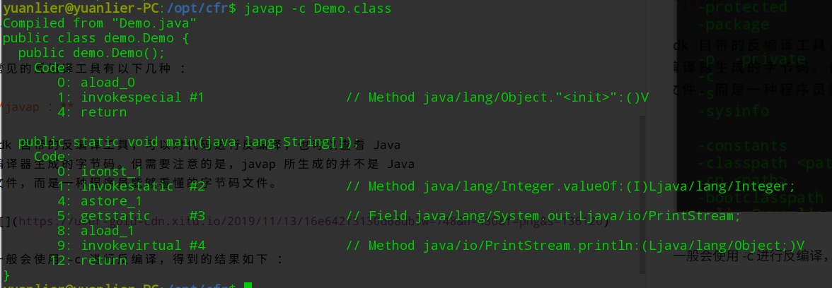 一般会使用 -c 进行反编译,得到的结果如下 :