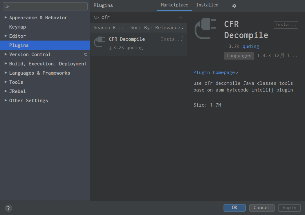 idea 下的 cfr 插件 :