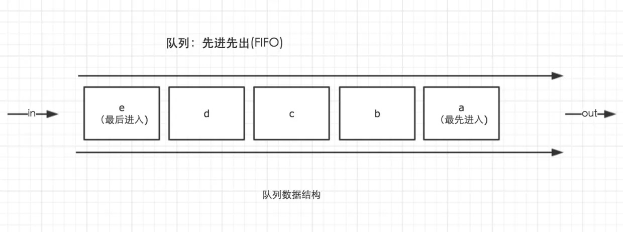 队列是一种先进先出(FIFO)的数据结构。正如排队过安检一样,排在队伍前面的人一定是最先过检的人。用以下的图示可以清楚的理解队列的原理。