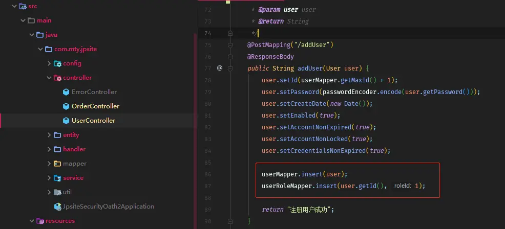 用户注册则往用户表插入数据,同时往用户角色表也插入一份数据。