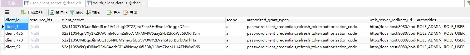 - 生成 OauthClientDetails 数据并保存至数据库中