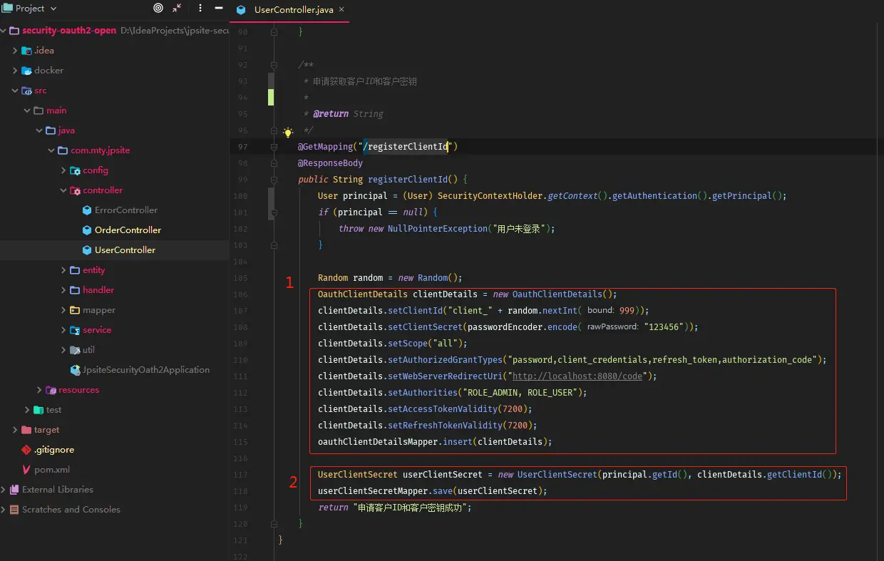 - 获取当前登录人信息,并绑定OauthClientDetails的clientId至user_client_secret表中
