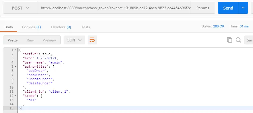 验证accessToken的 请求url: http://localhost:8080/oauth/check_token?token=1131809b-ee12-4aea-9823-ea4454b96f2d