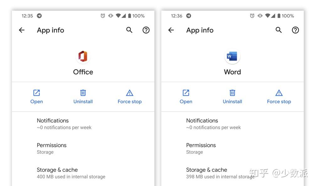 Microsoft Office 安装后占用的存储空间约为 400M,算不上轻量,但综合上述功能来看来性价比不低。事实上常用的「办公三大件」在 Android 平台上的空间占用都是动辄 100M 往上,Word 单个应用的存储空间占用甚至就逼近 400M;考虑到它对包括 Office Lens、Word、Excel、PowerPoint、PDF、便笺(Sticky Notes)乃至 OneDrive 等多个应用的常用功能都进行了整合,这样一个应用也绝对算得上是「存储空间友好」了。Microsoft Office 唯一的遗憾是还没有加入对 OneNote 的支持,同一个微软账号下的 Onenote 内容不会显示在主页面中。
