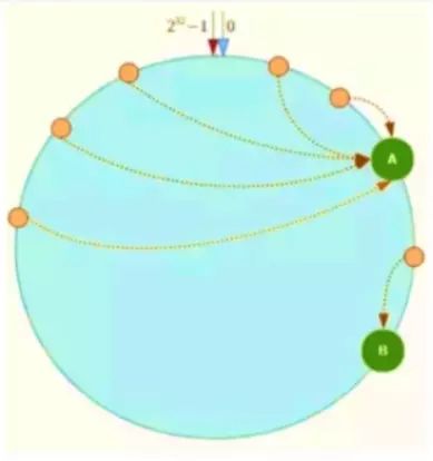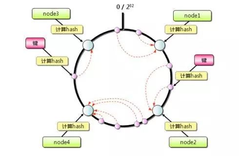 该算法对 2^32 取模,将 Hash 值空间组成虚拟的圆环,整个圆环按顺时针方向组织,每个节点依次为 0、1、2…2^32-1。