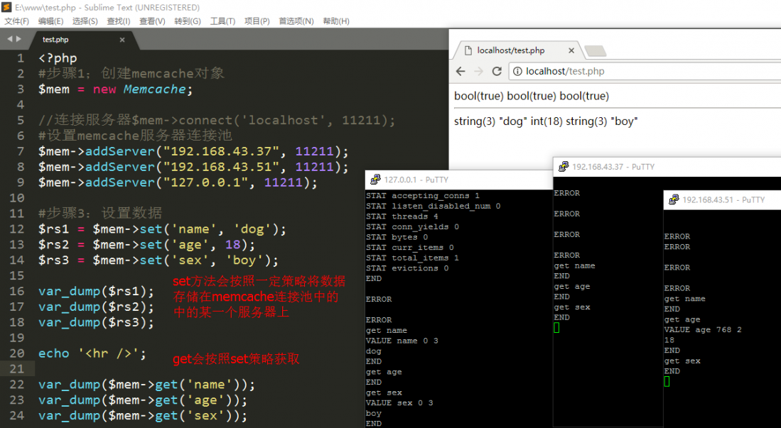 ”传给客户端程序后,客户端实现的算法就会根据“键”来决定将数据保存在哪一台