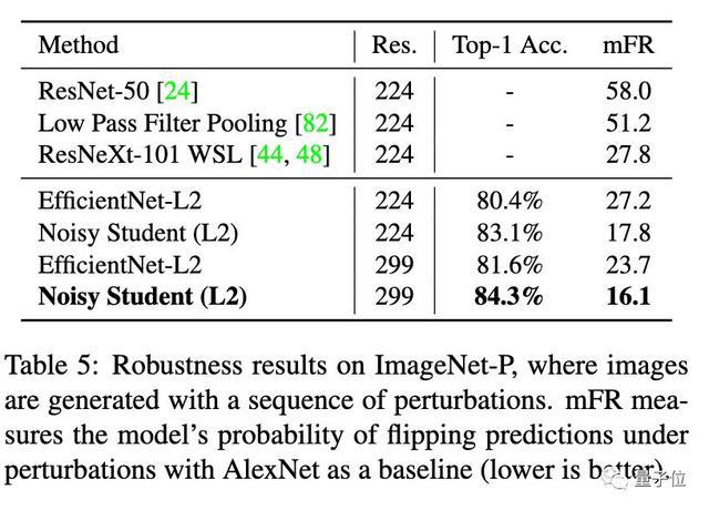 在ImageNet-P上,Noisy Student将平均翻转率从27.8降到了16.2。