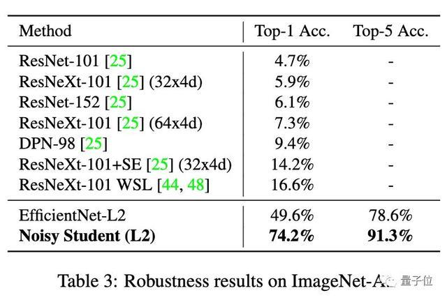 在这个基准当中,Noisy Student一举将top-1准确率从16.6%提高到了74.2%。