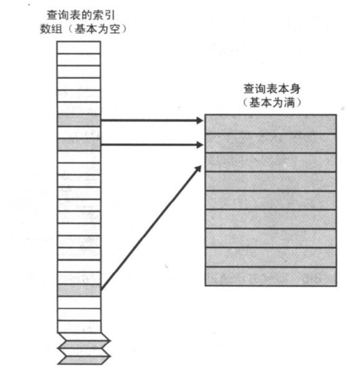 这种方法不像索引访问那么直接,但比索引访问要节省空间。