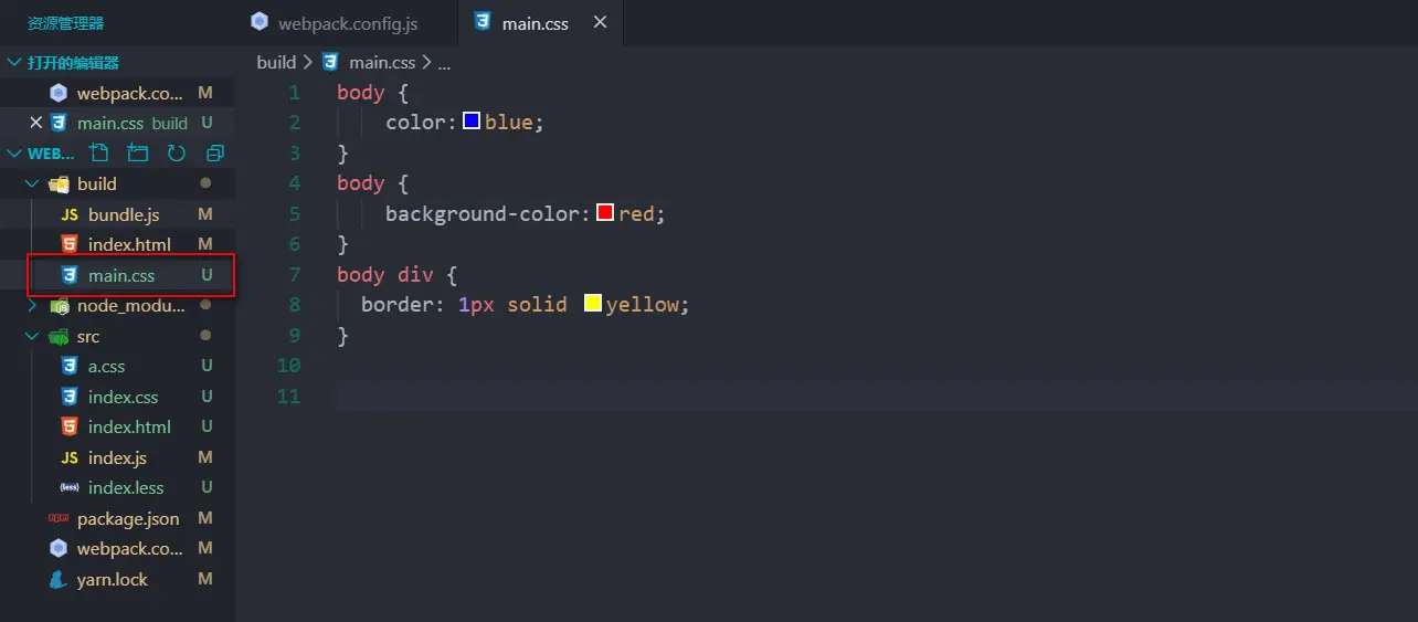 css的插件 :yarn add mini-css-extract-plugin -D - 安装好之后,在 配置文件中 引入: