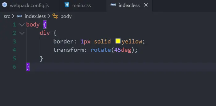 yarn add less less-loader -D - 安装好之后,到配置文件中配置我们的less规则。