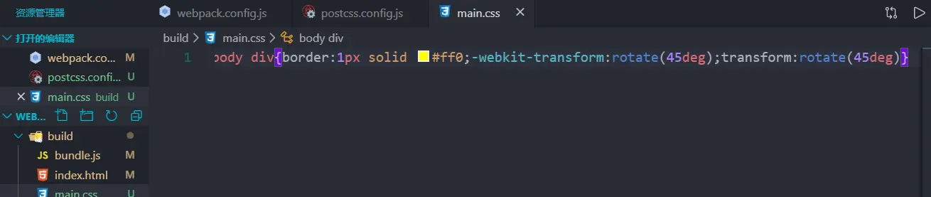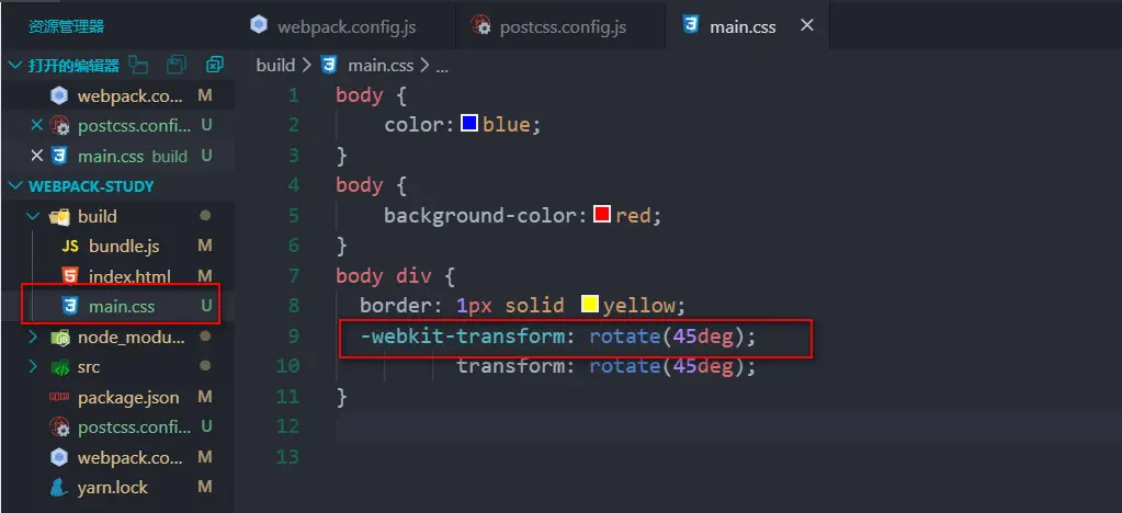 yarn add postcss-loader autoprefixer -D然后进行配置:加前缀的 loader 是在 解析css的 loader之前,配置css规则中的配置: