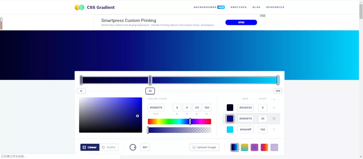 一个免费的 CSS 渐变效果生成器,可以让你轻松创建色彩渐变背景哦~