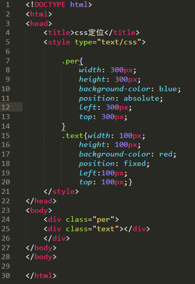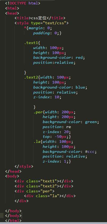 relative(相对定位,通过top,right,bottom,left改变元素位置,后写的带有定位属性的元素的层级大于先写的元素的层级,先写的被覆盖)