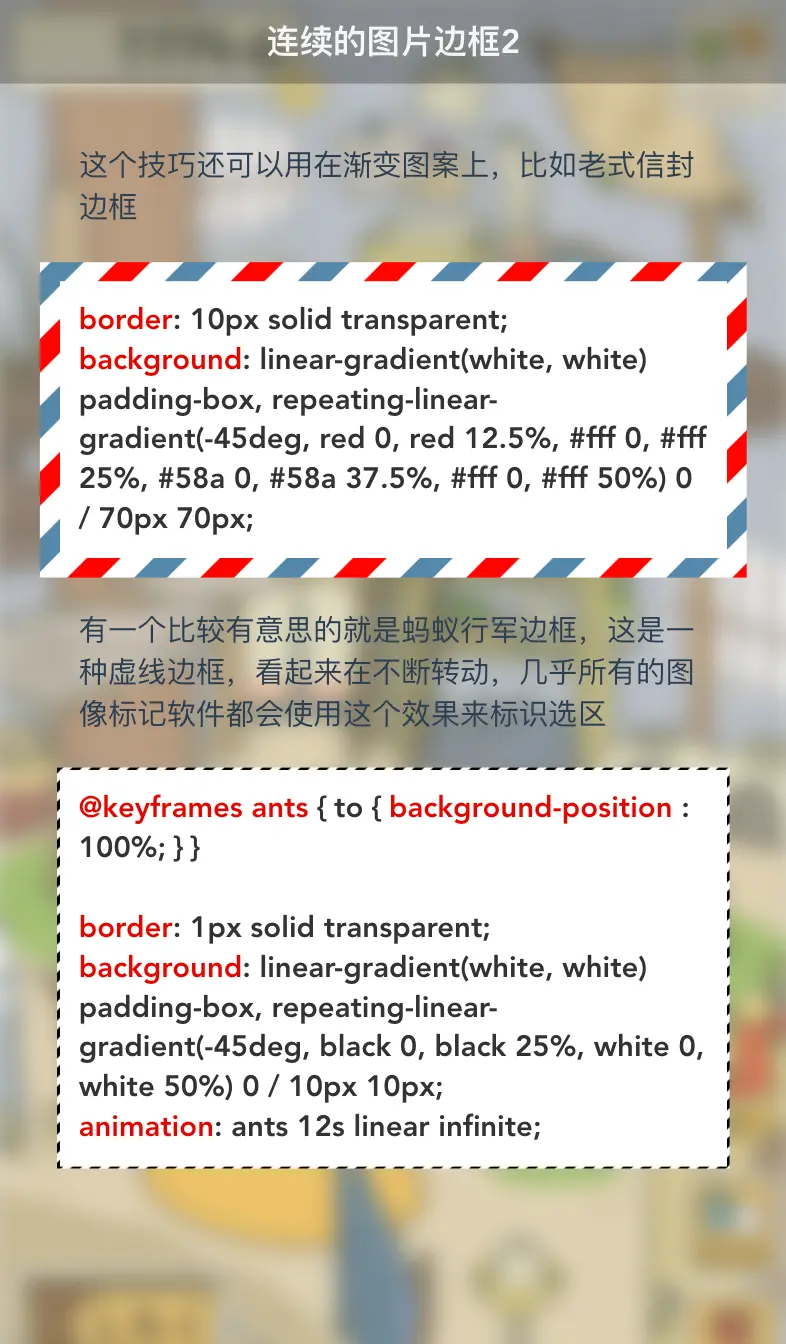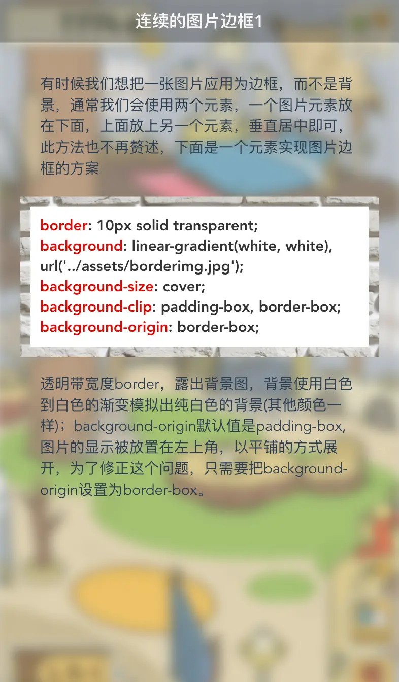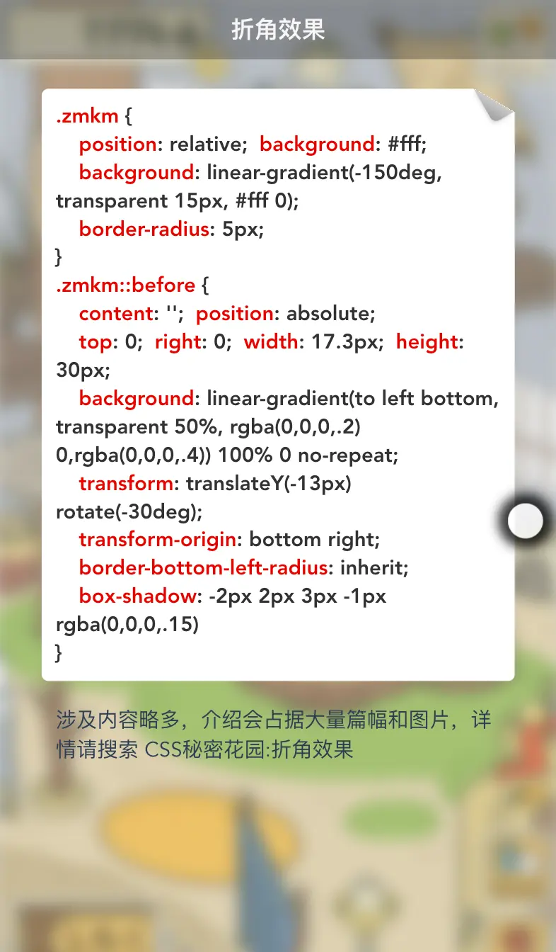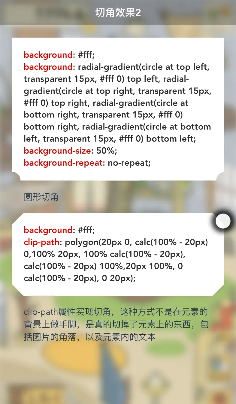 内容代码来自《CSS揭秘》这本书,这面通过书上的代码,在移动端实现的展示