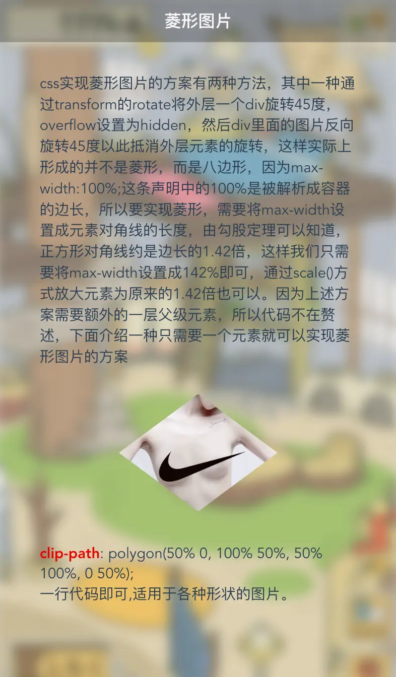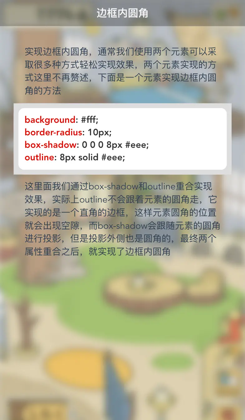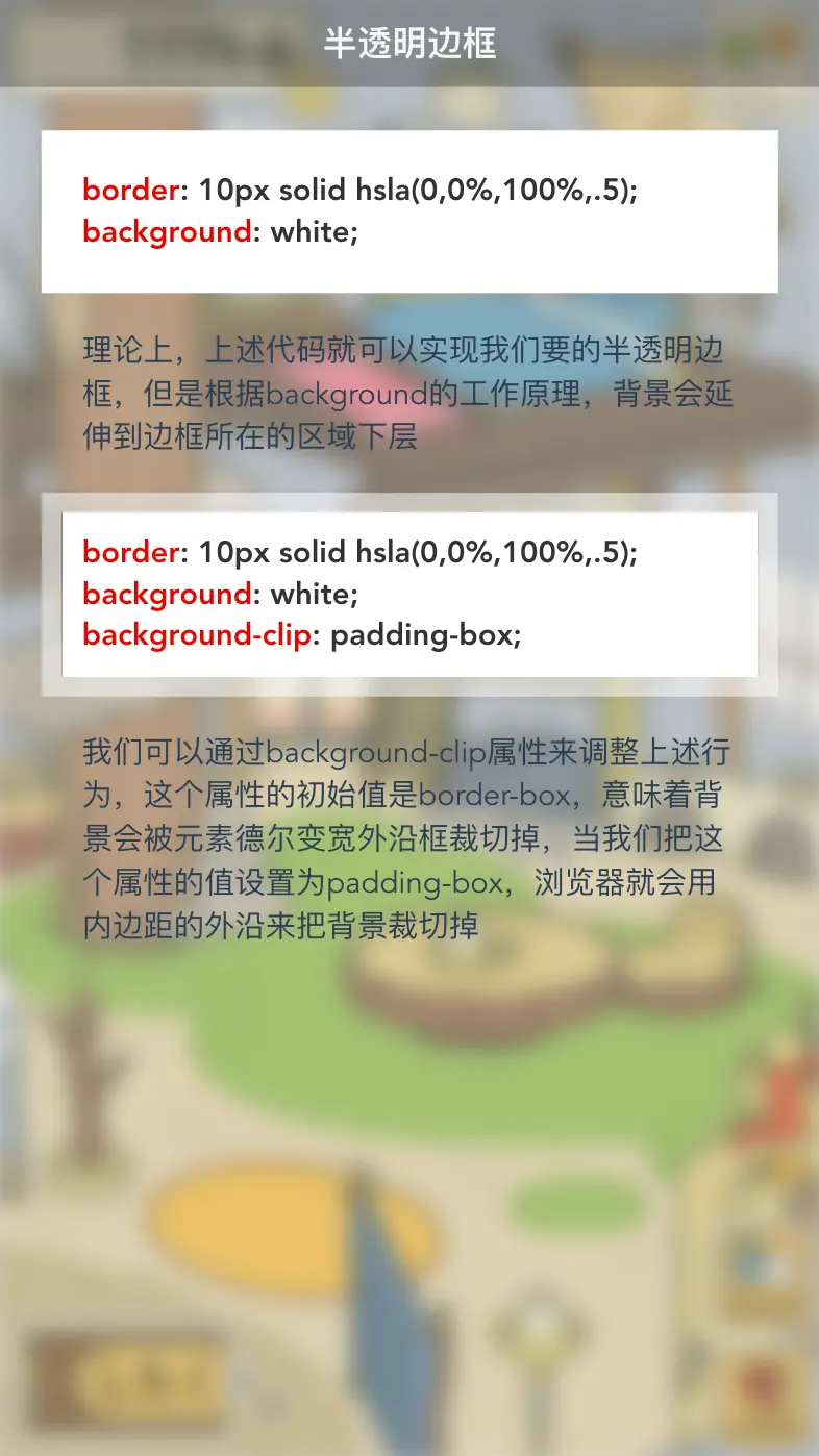 内容代码来自《CSS揭秘》这本书,这面通过书上的代码,在移动端实现的展示