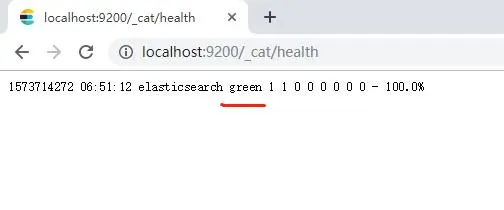 或者输入http://localhost:9200/_cat/health查看elasticsearch状态:green代表健康状态