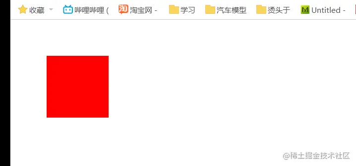 现在红色盒子可见部分只有原来1/4大小,即整个盒子向左向上移动了50px