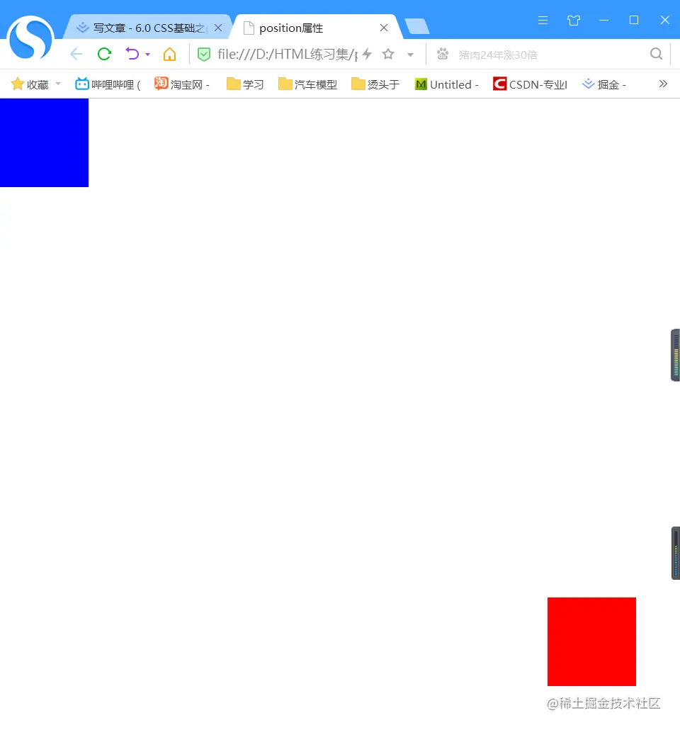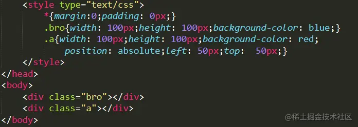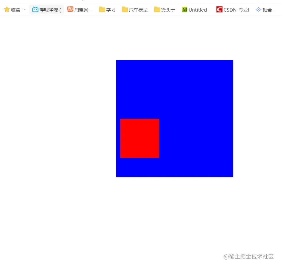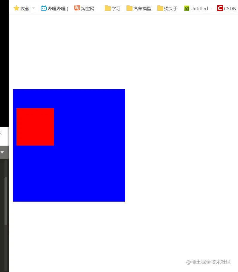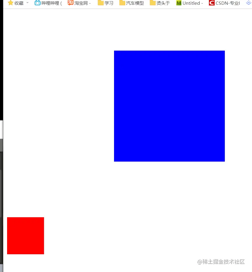 这里蓝色盒子覆盖掉红色盒子,所以后写的元素会覆盖先写的元素,后写的元素的层级大于先写的元素的层级。