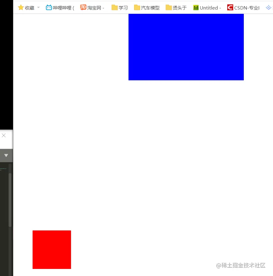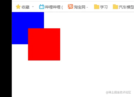 蓝色盒子仍然覆盖红色盒子显示,同时红色盒子上边缘以出现
