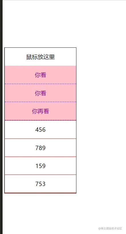 给列表设置display:none属性,是之隐藏。再给装有“鼠标放这里”的盒子添加伪类hover:鼠标停止后变成块状元素的属性。为了使之美观,添加cursor:pointer属性让鼠标放在标题上会变成手的形状。