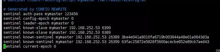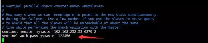 sentinel monitor mymaster 192.168.252.53 6379 2 sentinel auth-pass mymaster 123456 设置监控的主节点,2 是一个阈值,代表有两台或两台以上哨兵判断主节点 Redis 不通的话就认定这个节点有问题,实行故障转移。