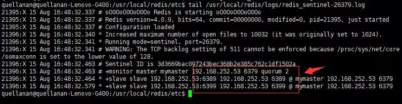 redis-sentinel /usr/local/redis/etc/sentinel.conf redis-sentinel /usr/local/redis/etc/sentinel26389.conf redis-sentinel /usr/local/redis/etc/sentinel26399.conf 查看一下,三个哨兵都已经启动了。